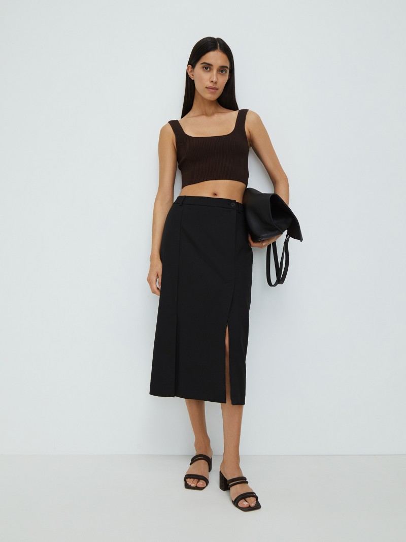 Прямая юбка миди для спокойных и нескучных образов. Высокая посадка подчеркивает талию, а две асимметричные шлицы красиво распахиваются при ходьбе. Юбка выполнена из плотной гладкой ткани, долговечной и приятной к телу. На подкладке. Сделано в Беларуси
