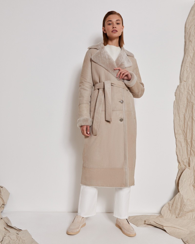 Дубленка миди с поясом. Модель прямого силуэта с боковыми прорезными карманами и застежкой на пуговицы. Пышный отложной воротник с лацканами. Дубленка выполнена из овчины испанского мериноса, которая отличается густым и мягким ворсом, тонкой и эластичной кожевой частью. Лазерное напыление с наружной стороны защищает поверхность от повреждений и влаги. Рекомендуемый температурный режим — от 0 до -20 градусов. Классический силуэт подходит для любого типа фигуры и позволяет создавать большое количество образов. Чтобы изделие дольше сохраняло вид новой вещи, мы рекомендуем сразу после покупки защитить его с помощью влагоотталкивающего средства. Нанести средство можно самостоятельно в соответствии с инструкцией по применению или обратиться в химчистку. Сделано в Турции.
