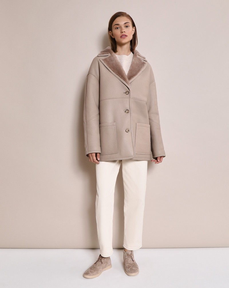 Короткая дубленка. Прямой силуэт, застежка на пуговицы. Два накладных кармана, воротник с треугольными лацканами. Дубленка выполнена из натурального тосканского меха — густого, легкого и очень теплого. Это пластичный и долговечный материал, который используют производители одежды премиум-сегмента. Модель выполнена в стиле жакета, благодаря чему останется актуальной не один сезон. Рекомендуемый температурный режим — от 0 до -20 °C. Чтобы изделие дольше сохраняло вид новой вещи, мы рекомендуем сразу после покупки защитить его с помощью влагоотталкивающего средства. Нанести средство можно самостоятельно в соответствии с инструкцией по применению или обратиться в химчистку. Сделано в Турции.