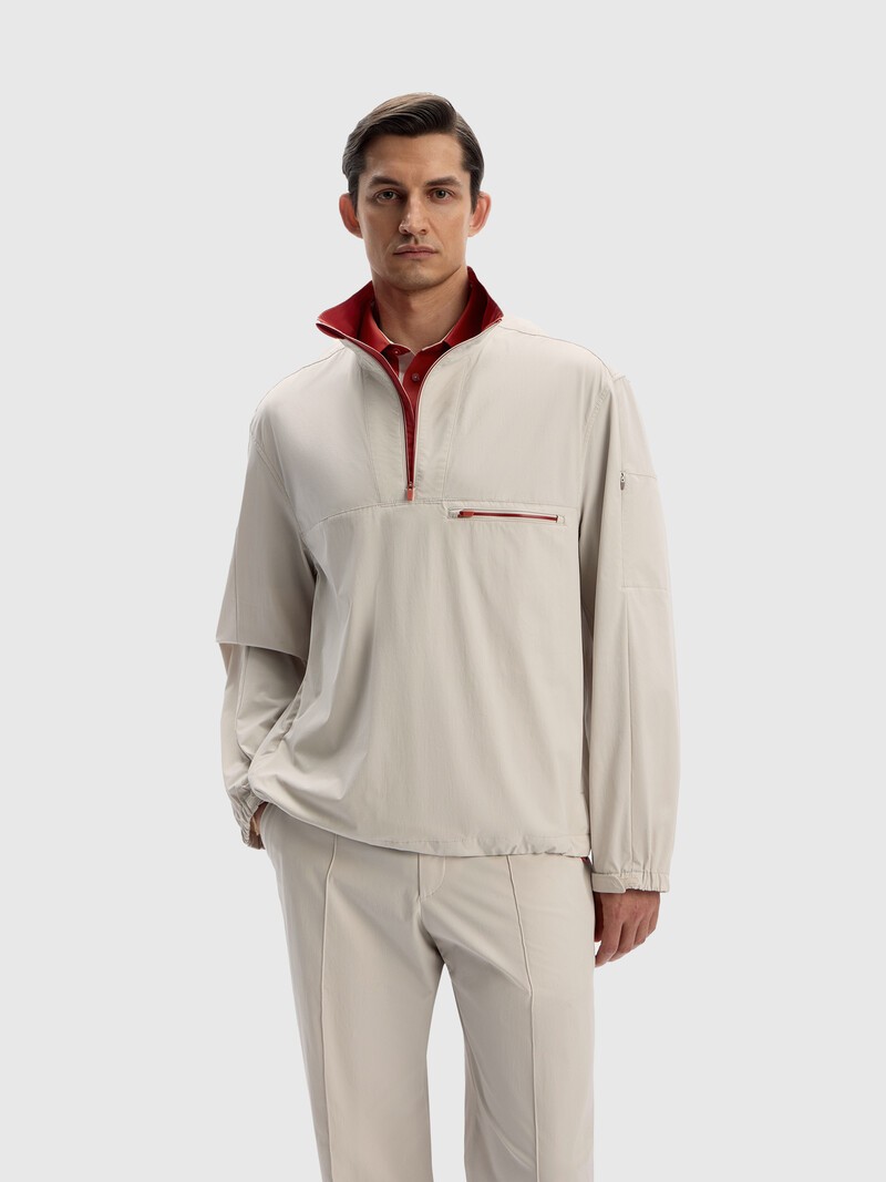 Анорак из нашей первой капсулы для гольфа создан из японской ткани для профессионального спорта и станет находкой для всех, кому нравятся максимально функциональные вещи. Тонкие прорезиненные молнии, водоотталкивающая пластичная ткань, продуманные детали для вентиляции — в такой куртке можно провести целый день: от первых рассветных лучей на поле, покрытом росой, до вечера на открытой террасе. Сделано в Китае.