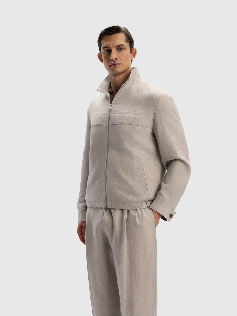 Летний бомбер из плотного льна, которому мы придали винтажные эффекты. Удобная застежка на металлическую молнию, карманы на подкладке, возможность отрегулировать ширину манжет — все вместе складывается в комфортную куртку, которую легко интегрировать в повседневный гардероб. А чтобы бомбер лучше держал форму, мы добавили подкладку из дышащего хлопка с вискозой. European Flax — сертифицированный европейский лен высшего качества: помогает сократить глобальный углеродный след, безопасен для человека и становится мягче со временем. Сделано в Китае.
