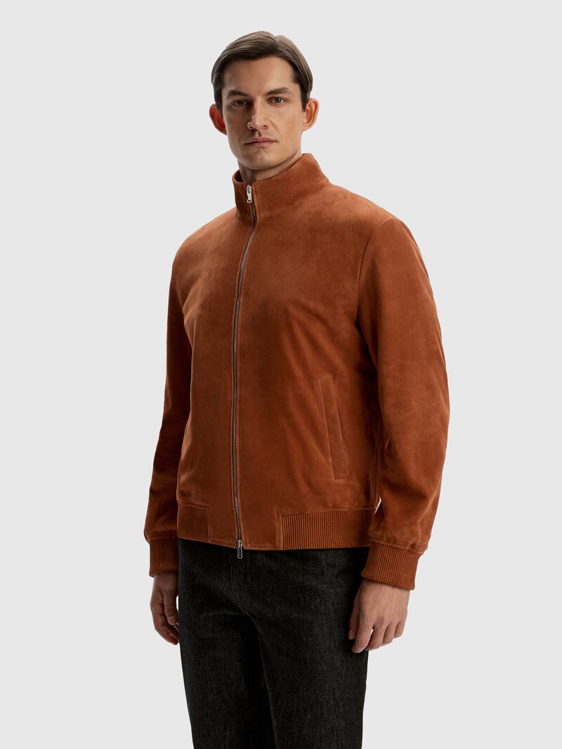 Классический бомбер из мягкой, пластичной и тонкой замши глубокого терракотового оттенка. В местах контакта с кожей ее защищает специальное покрытие, а воротник продублирован внутренней стойкой из мягкой шерсти. Застегивается на двухзамковую молнию Riri — долговечную, с особенно плавным ходом. Подкладка — из дышащей и бархатистой ткани купро. Серебряный статус LWG означает, что фабрика руководствуется принципами экологической безопасности используемых красителей, имеет необходимые очистные сооружения и заботится о здоровье сотрудников. Сделано в Турции.