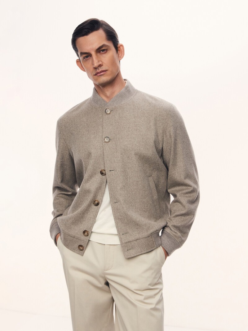 1. Бестселлер коллекции — бомбер из очень мягкой шерсти, который в этом сезоне сделали более лаконичным 2. Мы выбрали для него плотную и согревающую шерсть мериноса с ангорой, полученной экологичным способом 3. Может заменить теплый пиджак и при этом выглядит более расслабленно — легко сочетается и с классическими брюками, и с джоггерами 4. Манжеты и воротник связаны из 100% мериносовой шерсти 5. Никаких цепляющих деталей: ярлык с рекомендациями по уходу — внутри левого внутреннего кармана
