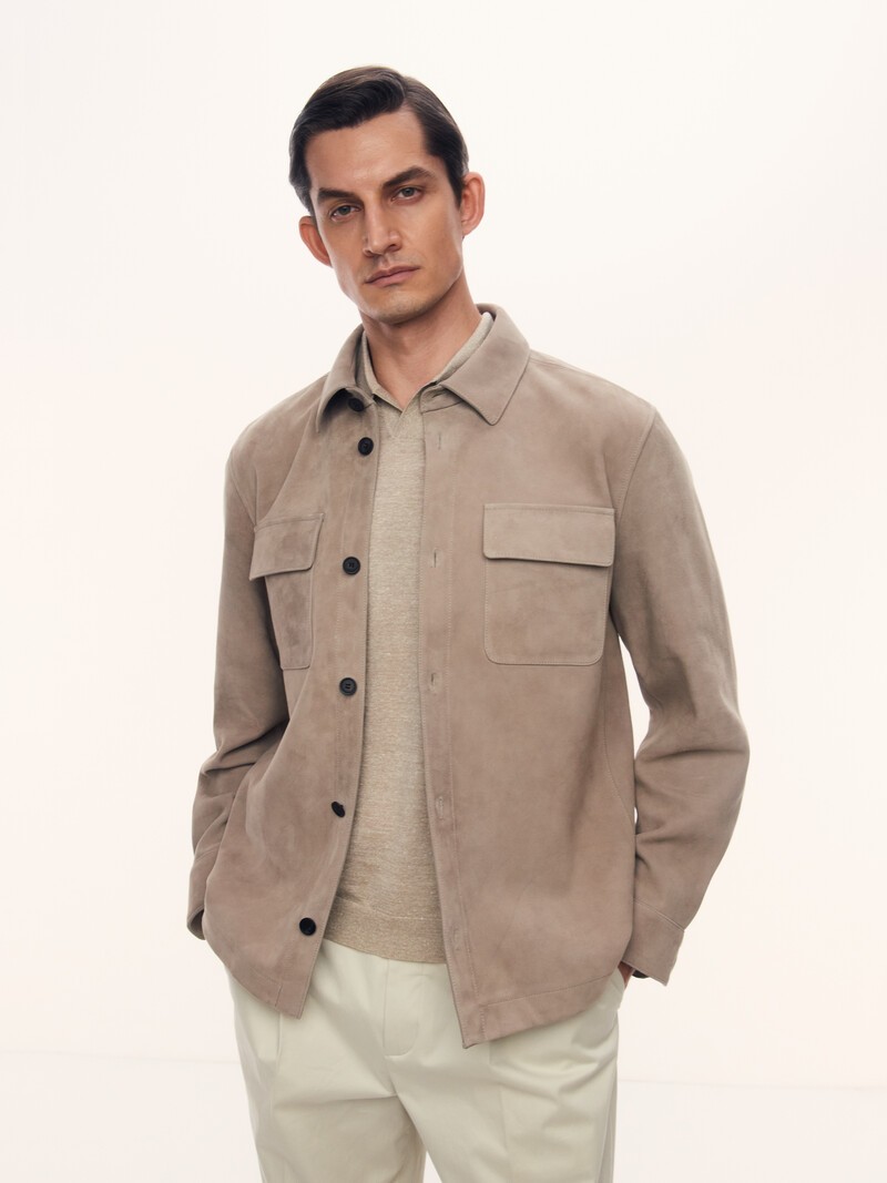 1. Для этой модели мы нашли плотную замшу африканской овцы с мягким ворсом — долговечную и согревающую 2. Можно носить и как куртку до +10 °С — на тонкий джемпер или водолазку 3. Чтобы сделать рубашку легче, мы сшили ее по новой технологии и отказались от подкладки 4. Поставщик, с которым мы сотрудничаем, имеет наивысшую оценку организации по защите окружающей среды LWG — золотой сертификат. Это значит, что фабрика полностью соответствует требованиям экологической безопасности, имеет все необходимые очистные сооружения и заботится о здоровье сотрудников