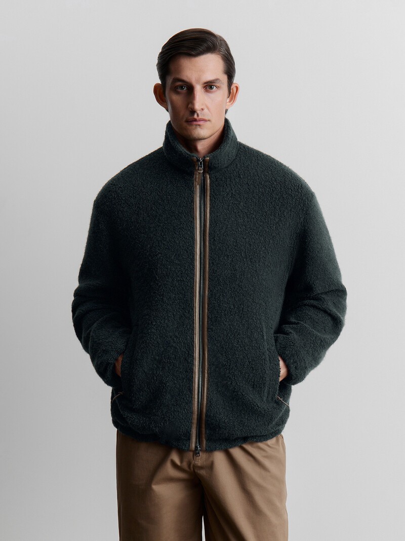 Куртка из теплого и легкого трикотажа с отделкой из натуральной кожи — согреет в прохладные дни и сделает образ уютным. Материал для этой модели напоминает мех и создан в Японии: на трикотажную основу нанесен густой и плотный ворс из овечьей шерсти. Объем и длину куртки можно корректировать с помощью кулиски, а молнии в карманах помогут не потерять важные мелочи. В местах трения могут образовываться пилли — пожалуйста, удаляйте их специальной машинкой. Сделано в Китае.