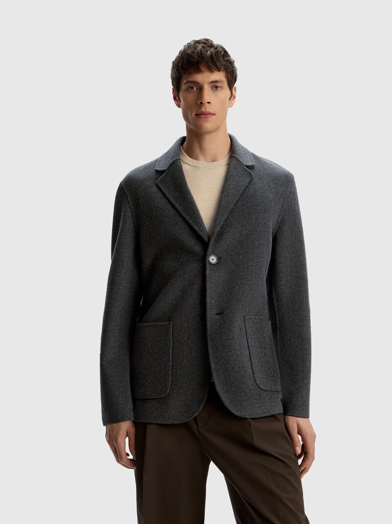 Пальто-пиджак, незаменимое в начале сезона, когда еще хочется одеваться уютно, но не слишком тепло. Классический прямой силуэт, чуть спущенное плечо и шлицы сзади, которые подчеркивают фигуру. Сшито из тонкорунной австралийской шерсти мериноса и невесомого воздушного кашемира из региона Внутренняя Монголия. Подкладки нет, но два слоя ткани, соединенные незаметными швами по технологии double face, помогают изделию держать форму и хорошо сохраняют тепло. Сделано в Китае.