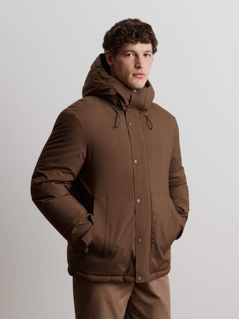 Новинка в нашей коллекции — комфортный и легкий пуховик без стежки. Прорезиненные молнии и прокленные планки, регулируемый капюшон и манжеты на липучках — мы включили в эту модель элементы спортивных курток, чтобы вам было комфортно двигаться в ритме города. Матовая ткань с водоотталкивающей пропиткой защищает от непогоды, а воздушный наполнитель из утиного пуха бережет тепло. Индекс Fill Power — 750, максимально высокий для натурального утиного пуха. В этом пуховике 260 г пуха (в размере L), поэтому мы рекомендуем его до температуры -10 °C.