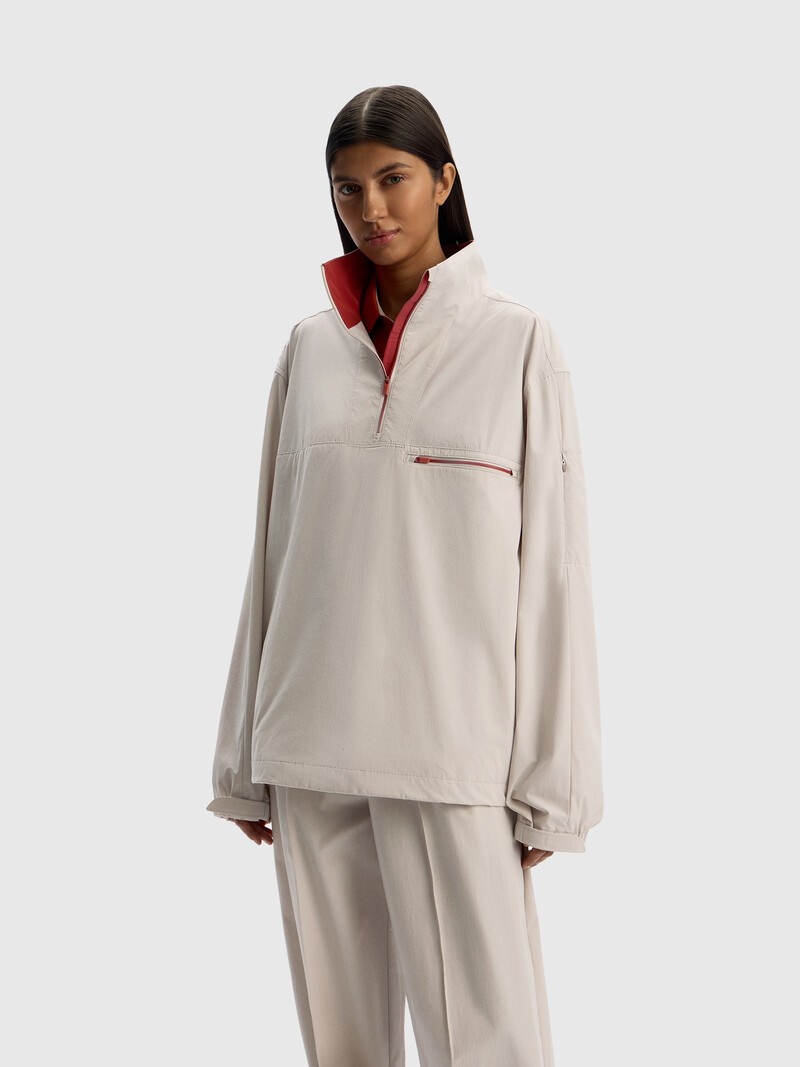 Анорак из нашей первой капсулы для гольфа создан из японской ткани для профессионального спорта и станет находкой для всех, кому нравятся максимально функциональные вещи. Тонкие прорезиненные молнии, водоотталкивающая пластичная ткань, продуманные детали для вентиляции — в такой куртке можно провести целый день: от первых рассветных лучей на поле, покрытом росой, до вечера на открытой террасе. Сделано в Китае.