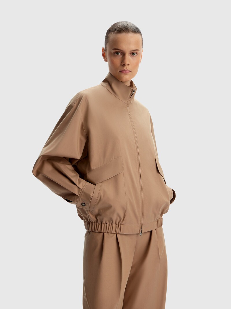 Объемный универсальный бомбер на металлической молнии — носите его в сухие теплые дни. Низ собран на резинку, но благодаря кокетке и высокому воротнику модель не выглядит слишком спортивной. Тактильно приятный материал с бархатистой поверхностью хорошо держит форму, а для большего комфорта мы добавили подкладку из хлопка с вискозой. Лиоцелл — нежное на ощупь волокно из древесины эвкалипта, современная и экологичная альтернатива вискозе. Во время производства не используются токсичные вещества, поэтому вредные выбросы не загрязняют атмосферу. Сделано в Китае.