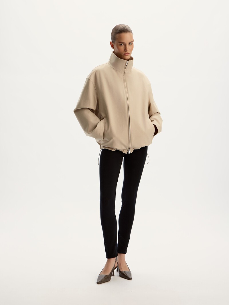 Лаконичный бомбер из плотного хлопка. Универсальная длина до середины бедра и возможность регулировать объем по нижнему краю кулиской позволят вписать его в любой гардероб. Выполнен из длинноволокнистого хлопка от нашего итальянского поставщика и дополнен легкой пропиткой WR, которая защитит от случайных капель дождя. Благодаря добавлению 5% эластана ткань практична в уходе и не сильно мнется. Застегивается на металлическую молнию. На подкладке из поливискозы. Мерсеризованный хлопок — мягкий и гладкий материал с шелковистым блеском. Он проходит специальную обработку, чтобы нить стала более прочной и со временем не утрачивала цвет. Сделано в России.