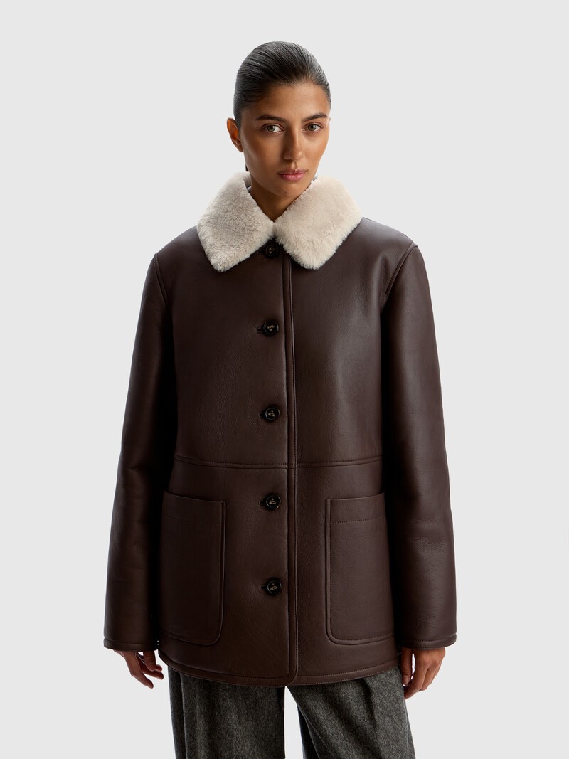Легкая дубленка из тонкой испанской овчины с густым курчавым мехом — комфортная и универсальная. Прямой силуэт, классическая длина, большие накладные карманы и застежка на пуговицы позволят вписать ее в любой гардероб. Выберете ли вы платье или джинсы — образ получится уютным и женственным. А защитное покрытие позволит надолго сохранить природные свойства материала и обеспечит устойчивость к царапинам.