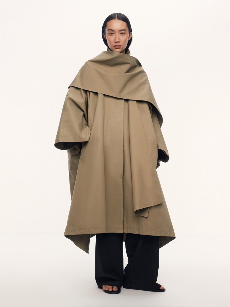 1. Бархатистая ткань на основе хлопка от нашего корейского поставщика. Дышит, отталкивает случайные капли дождя и деликатно поблескивает в складках 2. Можно стилизовать двумя способами: задрапировать шарф для более сложного образа или носить кейп без него 3. Для вашего комфорта и чтобы кейп лучше держал форму, мы добавили подкладку из тонкого хлопка