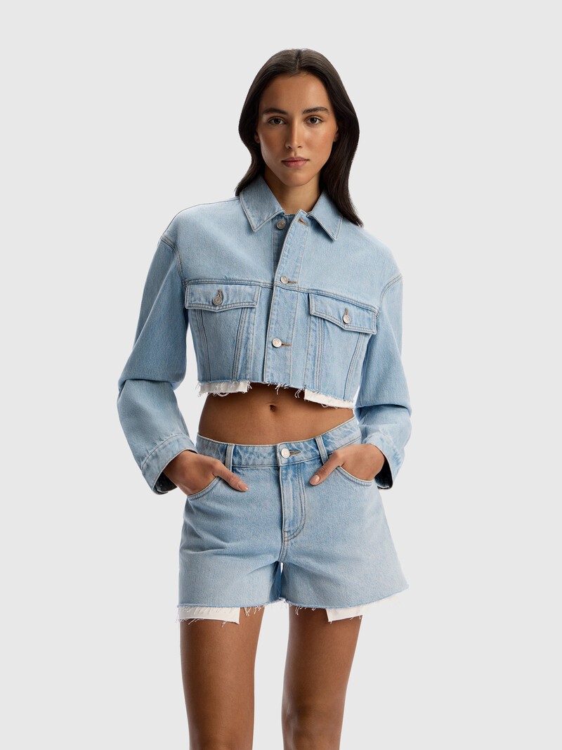 Укороченная куртка из денима для по-летнему расслабленных образов — с необработанным краем и слегка торчащей мешковиной карманов. Деним с выраженным рубчиком и деликатными потертостями плотностью 13,5 Oz хорошо держит форму и со временем будет выглядеть еще интереснее.