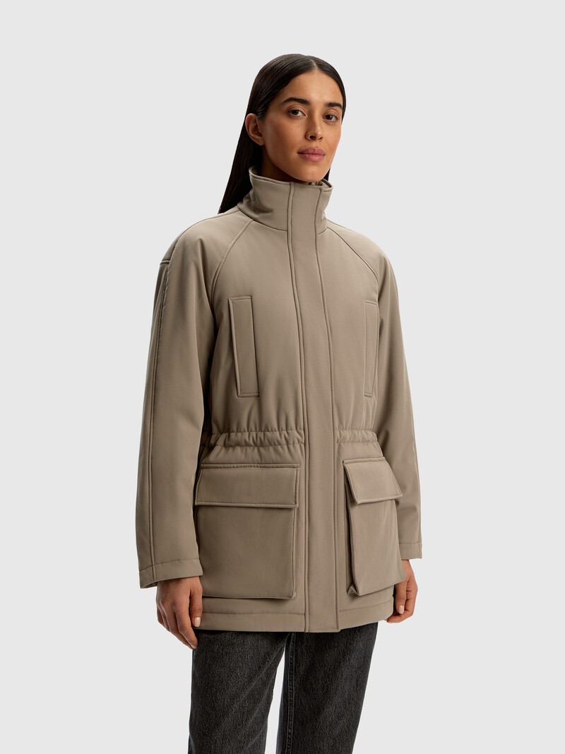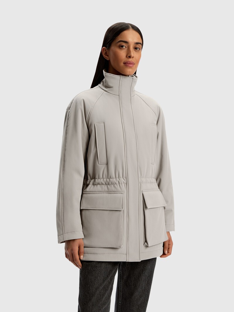 Объемная утепленная куртка на каждый день. Длина чуть ниже середины бедра, широкий рукав-реглан, уютный воротник-стойка — в такой модели будет комфортно не только весной или осенью, но и не слишком морозной зимой. Выполнена из плотной матовой ткани на основе нейлона с добавлением эластана, и проклеена тонким слоем флиса. Застегивается на прорезиненную молнию. Легкий инновационный утеплитель DuPont Sorona (150 гр) из растительного сырья согревает, как настоящий пух, не становится тоньше со временем и впитывает влагу. Его производство использует на 30% меньше энергии, а выбросы парниковых газов сокращаются на 63%.