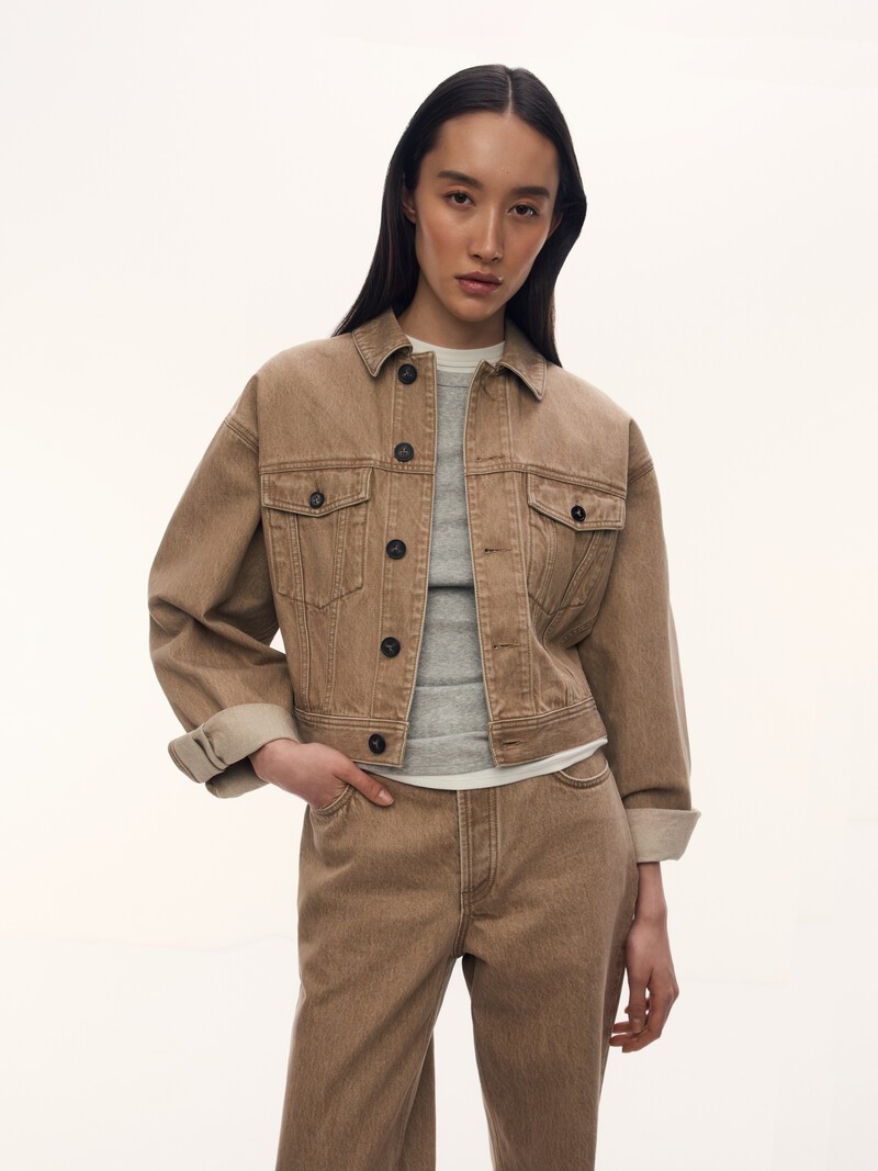 1. Новинка в нашей коллекции — слегка укороченная и компактная куртка, которая подчеркивает фигуру 2. Плотный и тактильно приятный деним 13 Oz, который выварили до песочного — на швах заметны деликатные эффекты Stone Wash 3. Застегивается на болты