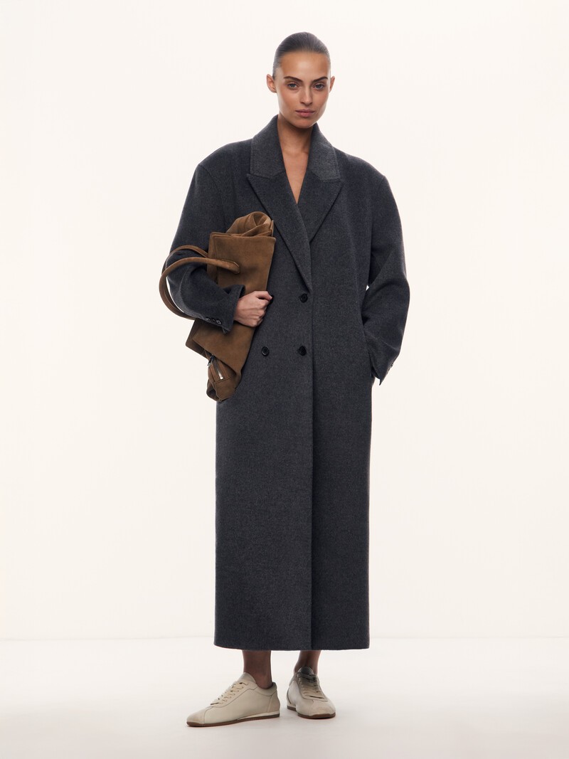 1. Новинка в коллекции — пальто из мягкой и теплой шерсти австралийского мериноса 2. Технология double face: все швы аккуратно спрятаны между двумя слоями ткани, поэтому подкладка не нужна — пальто выглядит безупречно и снаружи, и изнутри 3. Создает хрупкий силуэт за счет оверсайза и четкой линии плеча с подплечниками 4. Удобно носить с платьями — длина чуть выше щиколотки. Шлица сзади позволяет шагать широко