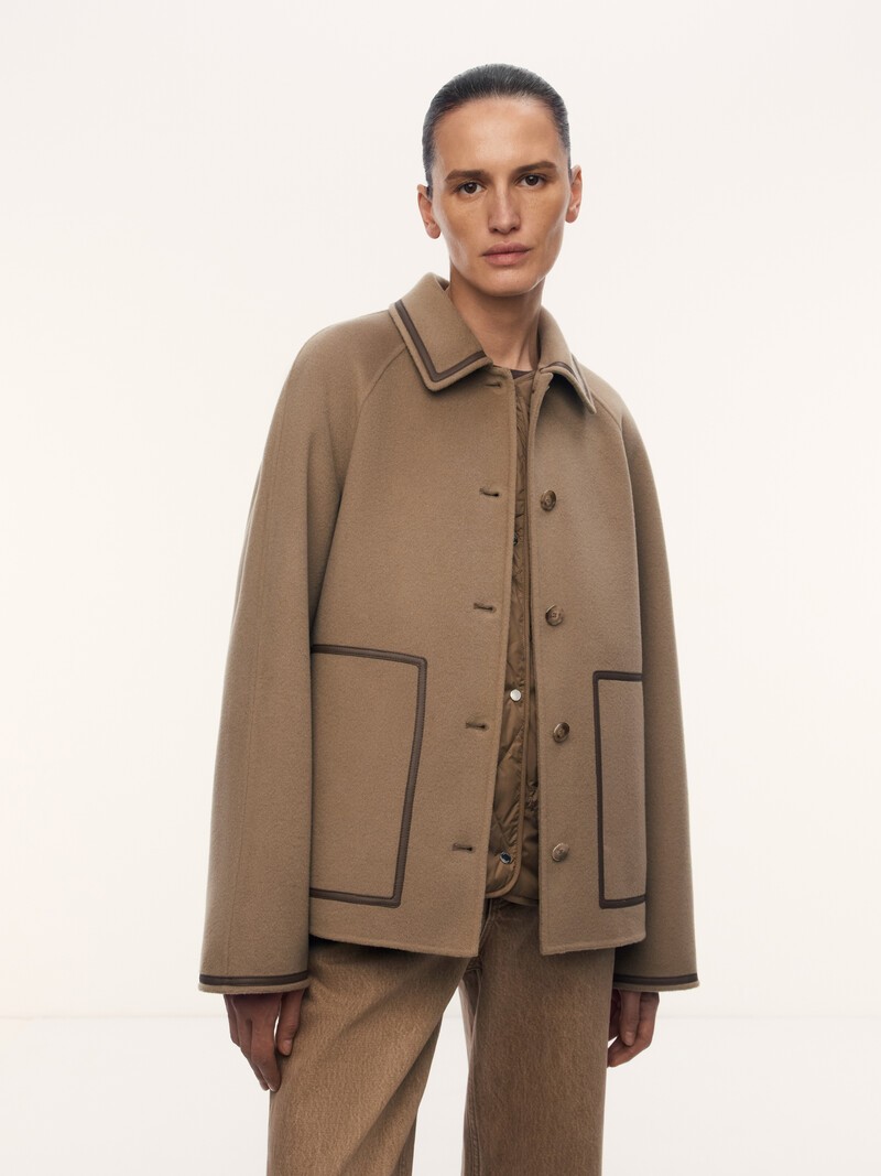 1. 100% шерсть австралийского мериноса — ее волокна в 2 раза тоньше обычной шерсти, поэтому материал совсем не колется и лучше удерживает тепло 2. Технология double face, которую используют для своих изделий Max Mara и Celine: пальто сшито без подкладки, а швы спрятаны между двух слоев ткани 3. Внутри — стеганый жилет с тонким слоем биопуха, который незаметно крепится к пальто пуговицами 4. 2 в 1: с жилетом пальто подойдет до 0 °C, без него — до +5 °C. Жилет можно носить отдельно — как согревающий слой под другие пальто или тренчи
