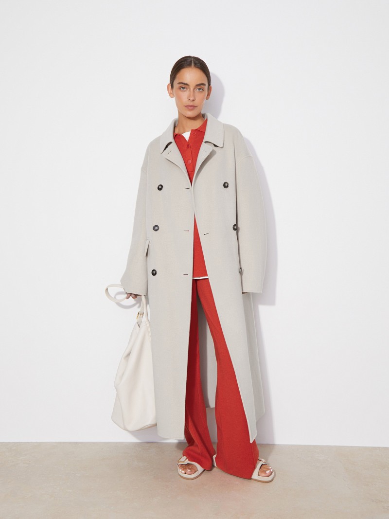 Двубортное пальто из шерсти и кашемира. Актуальная модель свободного силуэта сочетает в себе традиции мужского костюма и расслабленность стиля casual. Ткань соткана из мягкой и долговечной шерсти мериноса с добавлением невесомого кашемира. Пальто сшито из двухслойной ткани по технологии double face, что делает его еще теплее и сохраняет легким. Сделано в Китае.