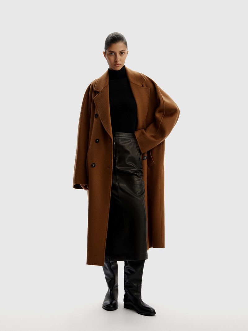 Культовая модель — двубортное пальто, в котором строгие линии мужского костюма гармонично сочетаются с комфортом свободного силуэта. В этом году мы выпускаем модель из 100% кашемира: собранные и очищенные вручную волокна пуха соединяются в невесомый и теплый материал, а уложенный волнами ворс деликатно поблескивает при разном освещении. Пальто сшито из двухслойной ткани по технологии double face — у него нет подкладки, оно легче и теплее аналогов.