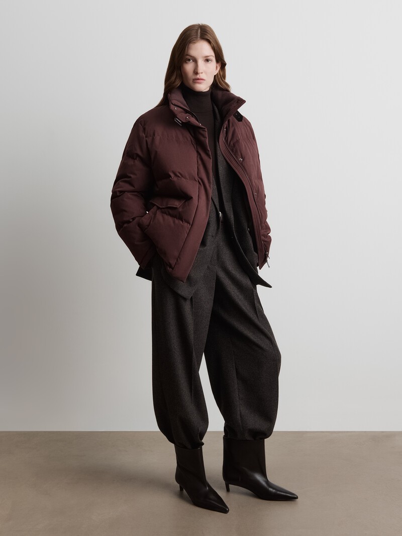 Новинка нашей коллекции — плотно набитый пуховик из бархатистой хлопковой ткани с элементами из натуральной кожи. Уютный округлый силуэт, высокий воротник, манжеты из мягкой мериносовой шерсти, подкладка из микрофлиса в карманах — каждая деталь обещает, что зима будет приятной. Мы используем здесь ткань от нашего корейского поставщика — эксперта в разработке технологичных материалов на натуральной основе. Индекс Fill Power — 750, максимально высокий для натурального утиного пуха. В этом пуховике — 190 г пуха (размер S), поэтому в нем должно быть тепло до -15 °C. Сделано в Китае.