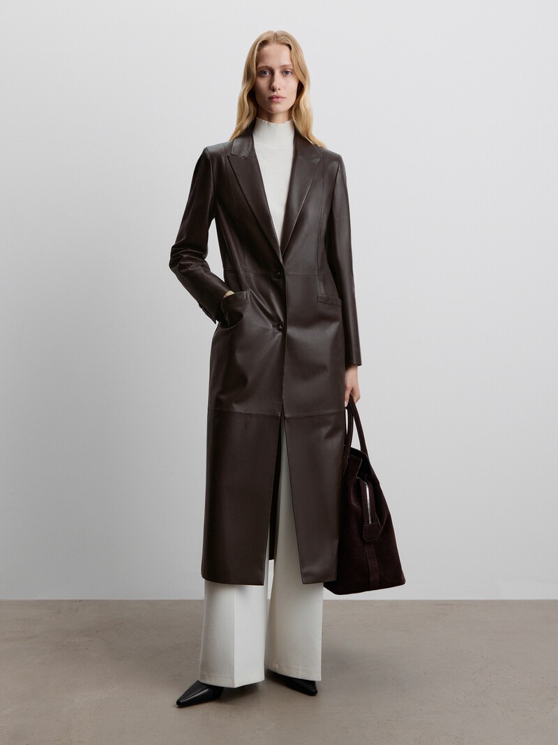 Изящный кожаный тренч, вдохновленный эстетикой супермодели Натальи Водяновой. Мы выбрали для него очень тонкую, почти перчаточную кожу и дополнительно укрепили швы — так эта модель прослужит вам дольше. Тренч легко стилизовать — носите его, как платье, на водолазку или накидывайте поверх шелковых комбинаций вместо пальто. Застегивается на две пуговицы и аккуратно подчеркивает силуэт, оставляя свободу движений. Золотой статус LWG означает, что фабрика полностью отвечает требованиям к экологической безопасности процессов и химикатов, имеет все необходимые очистные сооружения и заботится о здоровье сотрудников. Сделано в Турции.