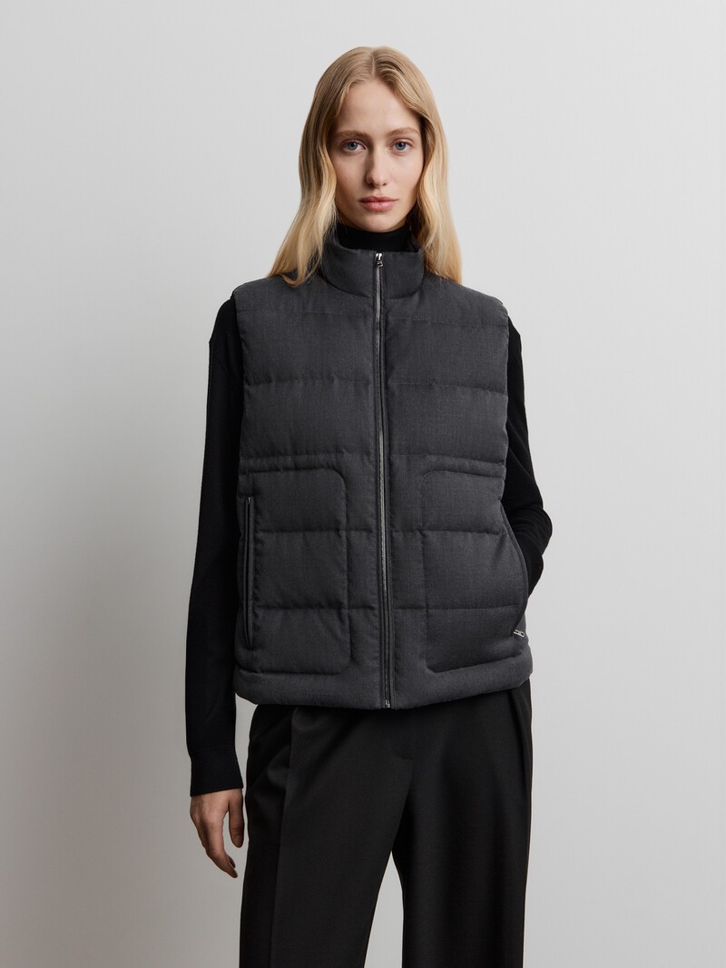 Пуховый жилет из шерсти — эстетичная и уютная альтернатива моделям из нейлона. Шерсть австралийского мериноса — мягкая, гладкая, со специальной пропиткой, которая защищает ее от влаги. Мы дополнили карманы молниями и сделали воротник высоким — так ветреные дни будут более комфортными. Утиный пух с Fill Power 710 — воздушный наполнитель отборного качества, хорошо держит тепло и не теряет объем со временем. Пушинки мягкой шерсти могут скатываться, когда материал трется о другие поверхности. Чтобы удалить пилли, пользуйтесь специальной машинкой.