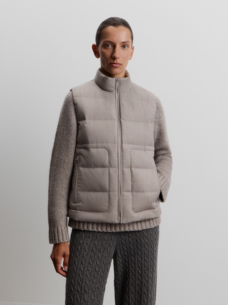 Пуховый жилет из шерсти — эстетичная и уютная альтернатива моделям из нейлона. Шерсть австралийского мериноса — мягкая, гладкая, со специальной пропиткой, которая защищает ее от влаги. Мы дополнили карманы молниями и сделали воротник высоким — так ветреные дни будут более комфортными. Утиный пух с Fill Power 710 — воздушный наполнитель отборного качества, хорошо держит тепло и не теряет объем со временем. Пушинки мягкой шерсти могут скатываться, когда материал трется о другие поверхности. Чтобы удалить пилли, пользуйтесь специальной машинкой. Сделано в Китае.