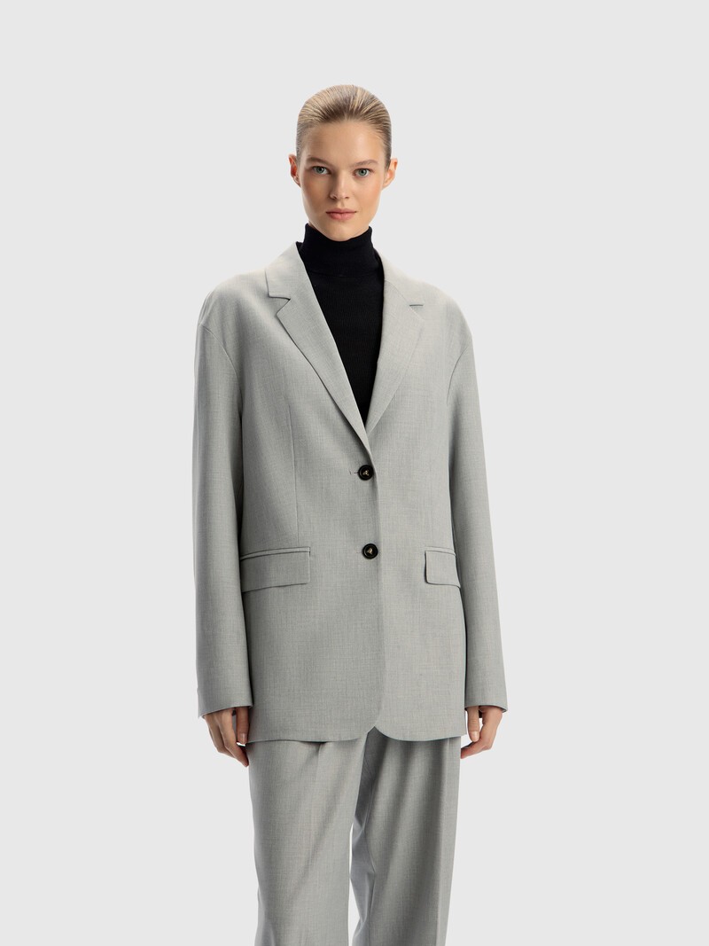 Базовый однобортный пиджак — наш бестселлер. Свободный прямой силуэт, мягкое плечо, скругленная линия низа, универсальный оттенок — в этой модели есть все для создания комфортных расслабленных образов. Выполнен из гладкой матовой ткани с легким эффектом меланжа от нашего португальского поставщика. Сочетайте с брюками или юбкой из нашей коллекции. На шелковистой подкладке. Сделано в Турции.