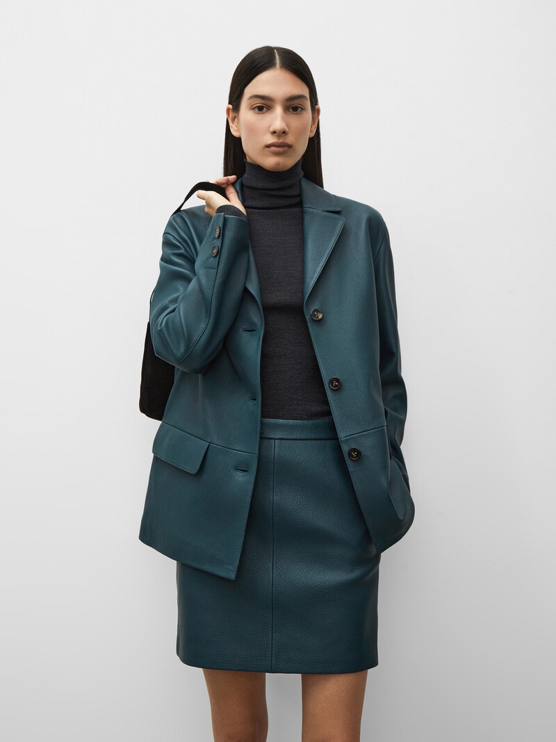 Наш бестселлер — прямой силуэт, слегка спущенное плечо, шлицы на рукавах и шелковистая подкладка. Комбинируйте с джинсами и водолазкой или носите с платьем. Для этой модели мы выбрали кожу ягненка с природным рисунком: минимальная обработка позволила сохранить дышащие свойства материала и уникальную фактуру. Серебряный статус LWG означает, что фабрика руководствуется принципами экологической безопасности используемых красителей, имеет необходимые очистные сооружения и заботится о здоровье сотрудников.