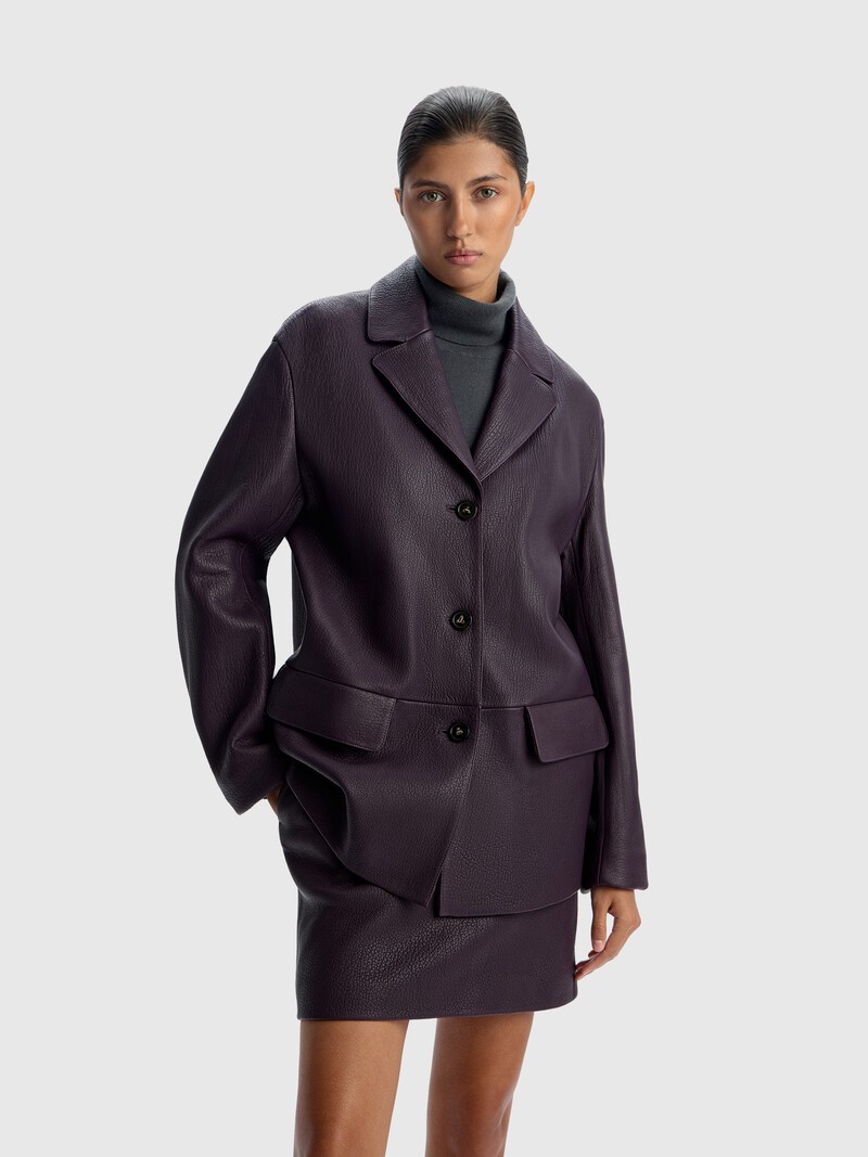 Универсальный прямой пиджак, однобортный, с чуть спущенным плечом — наш бестселлер. Такой подойдет и к джинсам, и к брюкам из кожи или вельвета. Выполнен из плотной, ровной кожи ягненка с красивой естественной фактурой. Минимальная обработка позволяет сохранить все преимущества натурального материала, дышащего и приятного на ощупь. На шелковистой подкладке. Серебряный статус LWG означает, что фабрика руководствуется принципами экологической безопасности используемых красителей, имеет необходимые очистные сооружения и заботится о здоровье сотрудников. Сделано в Турции.