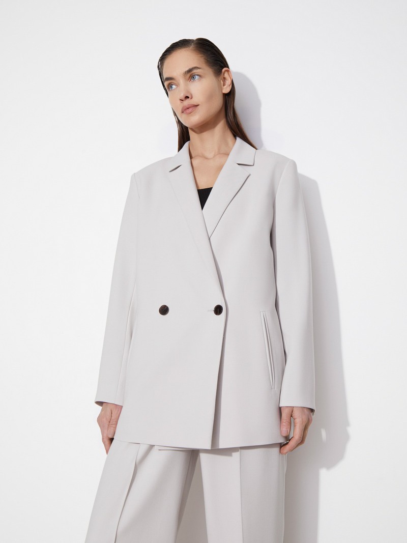 Прямой двубортный жакет — нестареющая классика, одна из самых универсальных моделей. Мы дополнили жакет аккуратными подплечниками, чтобы он отлично садился на любые типы фигур. Выполнен из мягкой и приятной к коже костюмной ткани с гладкой фактурой. На подкладке. Можно составить комплект с брюками из нашей коллекции. Сделано в России.