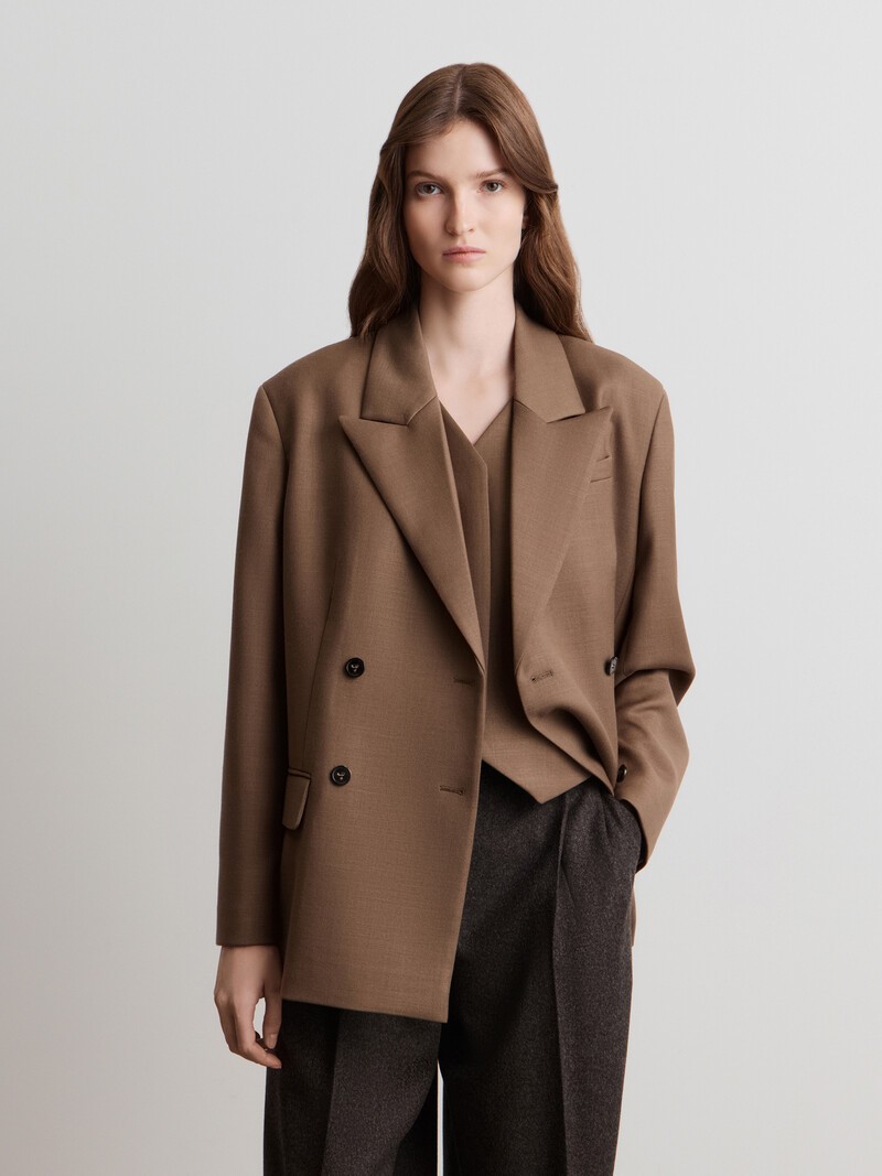Двубортный жакет, отсылающий к 80-м и придающий образу хрупкость — прямой силуэт, итальянские лацканы, четкая линия плеч. Выполнен из мягкой шерстяной ткани красивого глубокого оттенка с выраженным рубчиком и небольшим лоском. Все швы аккуратно закрыты кантом с изнанки. Сочетайте с жилетом и брюками из нашей коллекции. Сделано в Китае.