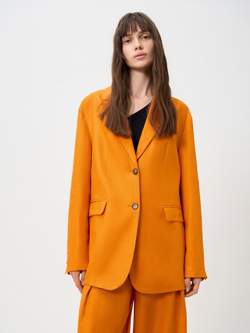 Свободный льняной жакет словно позаимствован из мужского гардероба: добавьте к нему брюки и укороченный топ или накиньте вечером на комбинацию мини. Для модели выбрали матовый лен с плотным переплетением тонких нитей — ткань хорошо держит форму и защищает кожу от летнего зноя и ветра. На подкладке. Можно составить комплект с брюками из коллекции 12 STOREEZ. European Flax — сертифицированный европейский лен высшего качества: помогает сократить глобальный углеродный след, безопасен для человека и становится мягче со временем Сделано в России.