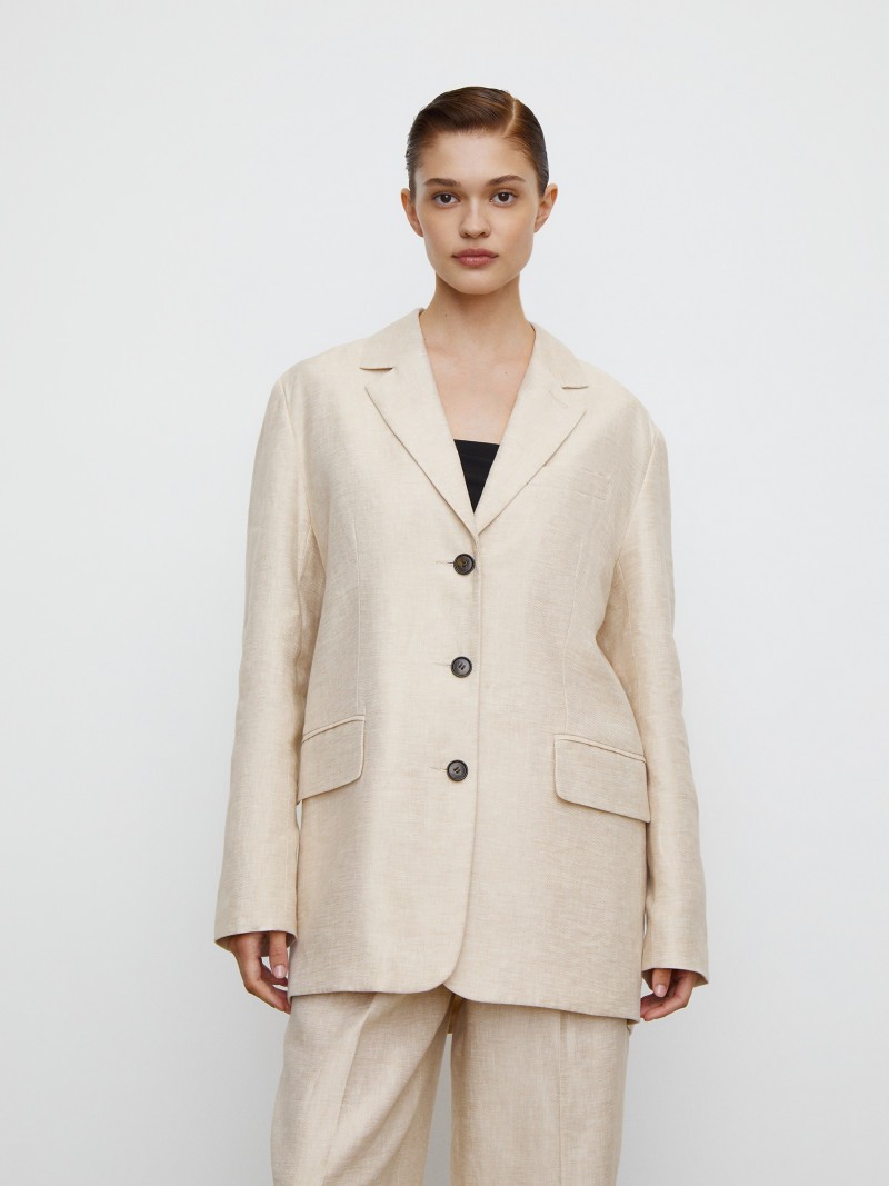 Жакет оверсайз с застежкой на три пуговицы и дополнительным объемом в плечах словно позаимствован из мужского гардероба. Сочетайте его с брюками и топом-бра или накиньте на аккуратное платье мини. Для модели выбрали мягкий структурный лен с твиловым переплетением. На подкладке. European Flax — сертифицированный европейский лен высшего качества: помогает сократить глобальный углеродный след, безопасен для человека и становится лучше с каждой стиркой Сделано в Беларуси.