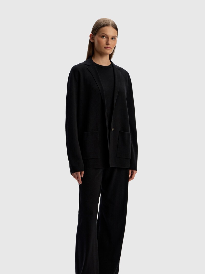 Прямой лаконичный жакет из шелка и хлопка — уютная альтернатива текстильному блейзеру. Мы связали его из тонкого и плотного трикотажа. Накладные карманы и мягкая линия плеча придают модели расслабленный вид — то, что нужно в теплые дни. У этого изделия низкая пиллингуемость. При правильном уходе первые пилли могут появиться на нем в среднем через 10 носок. Сделано в Китае.