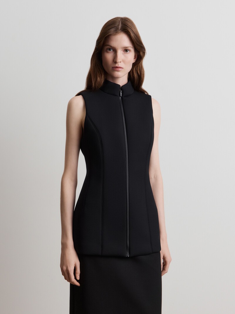 Удлиненный жилет с акцентом на талии для комфортных и аккуратных женственных образов. Длина до середины бедра, аккуратный воротник стойка — сочетайте такой с водолазкой, лонгсливом или футболкой в прохладные дни. Для этой модели мы выбрали инновационный материал, созданный в Японии. Ткань состоит из трех слоев — шерсти, полиуретана и полиамида, согревает, не растягивается и восстанавливает объем. На подкладке. Сделано в России.